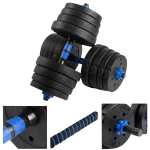 Use as two separate 20kg dumbbells, or attach the connector rod to join them into one 40kg barbell for expanded exercise possibilities.