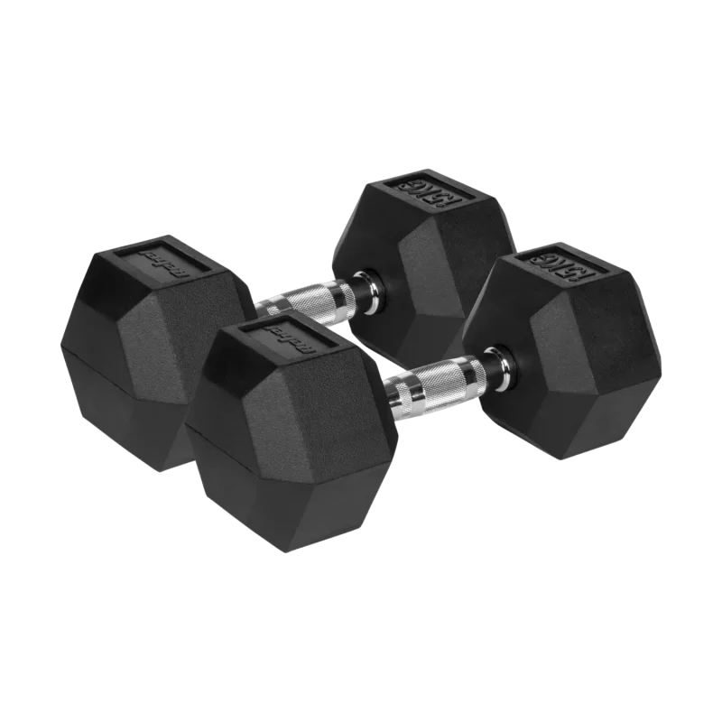 Each weight pair features durable rubber coating that protects your floors and reduces noise during workouts. The ergonomic chrome handles provide comfortable grip control, while the hexagonal plate design prevents rolling between sets. Perfect for home gyms throughout Cyprus, from beginner lifts to intermediate strength building.